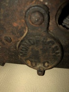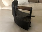 Strygejern, Metal/træ, 100 år gl., antik 19. århundrede, trækul, Mrk. MONDRAGON, str.6 1/2