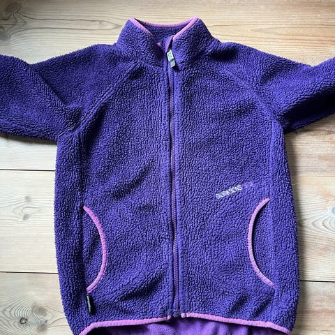 Blåt fleecesæt i str. 130. Brugt, men i rigtig fin stand.