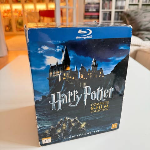 Harry Potter Complete 8-Film Collection på Blu-ray, indeholder alle otte film i serien. Blu-ray-formatet sikrer høj billed- og lydkvalitet. Samlingen inkluderer filmene i deres originale versioner.