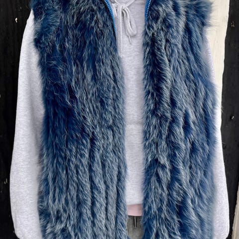 Flot lang fransk ægte pels unik varm Grå/Brun 120 cm fra skulder og ned ..kan sendes