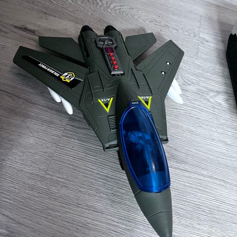 Thunderbirds legetøjsplayset inkluderer en detaljeret base formet som en bjergstruktur med flere åbninger og tilbehør. Sættet indeholder forskellige køretøjer i grøn, rød, gul og sort farve med forskellige designs. Materialet er plast, og sættet er egnet til børn som samlerobjekt eller til leg.