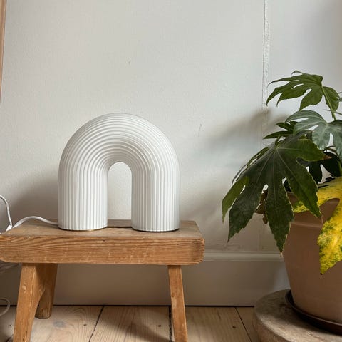 Lampe fra Ferm Living med marmor stander. Passer til E14 pære.