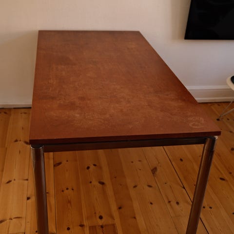 Bordet er stabilt og velholdt med naturlige brugsspor, som passer perfekt til den rustikke stil. Ideelt til store middage, familier eller sociale sammenkomster.