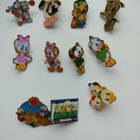 Disney Anders And Superstar I 60 År pin med farvet motiv og metal bagstykke. Samlerobjekt relateret til Anders Ands 60-års jubilæum.