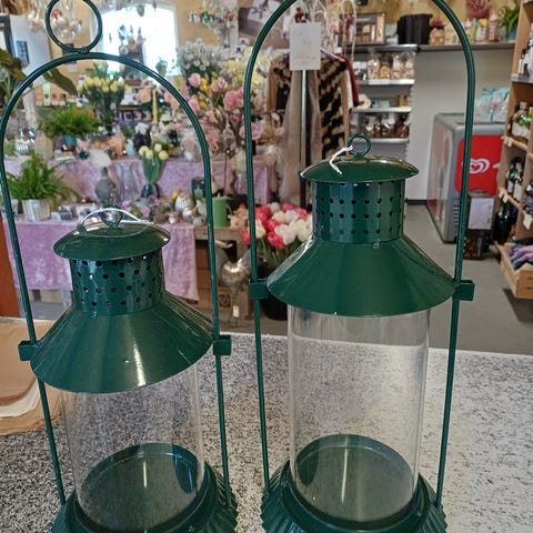 2 stk. hvide metal lanterner/“lys-huse sælges samlet.