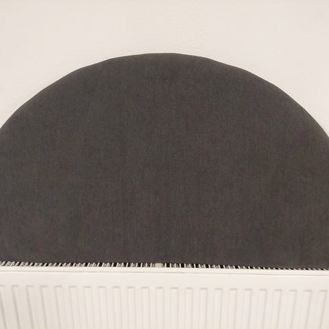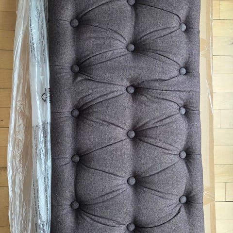 Lys grå og mørkere grå. 180x75 cm med stropper af lys læder og messingbeslag til ophængning. Alt fremstår som nyt. Nypris 1500 kr.