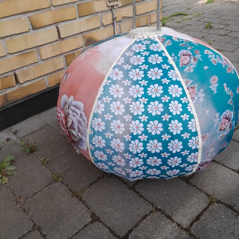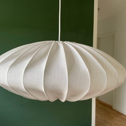 Stor flot lysebrun stoflampe med målene 50cm i diameter og 25cm høj. Nypris 600.