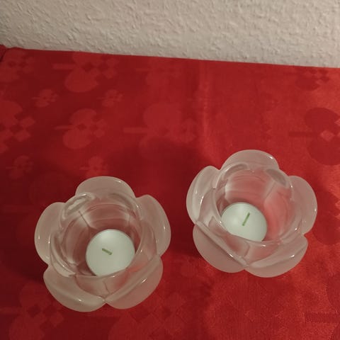 Holmegaard Lotus fyrfadsstager, 2 stk. H: 8 cm x B: 9 cm. 2 stk. i perfekt stand, fremstår som helt nye. 50 kr. pr. stk.