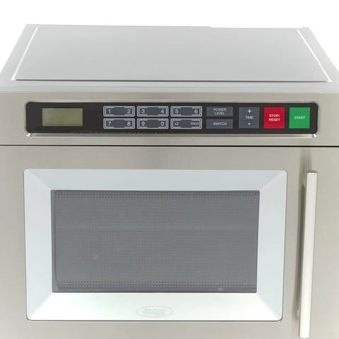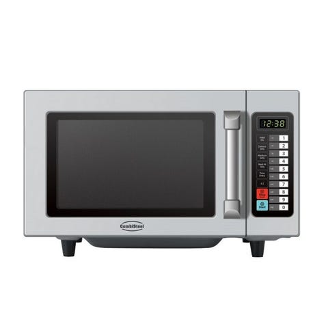 Sharp R-20ST mikrobølgeovn med rustfrit ståloverflade. Udstyret med flere funktioner som popcorn, drikkevarer, opvarmning og optøning. Betjenes via drejeknap og knapper til forskellige programmer og vægtindstillinger.