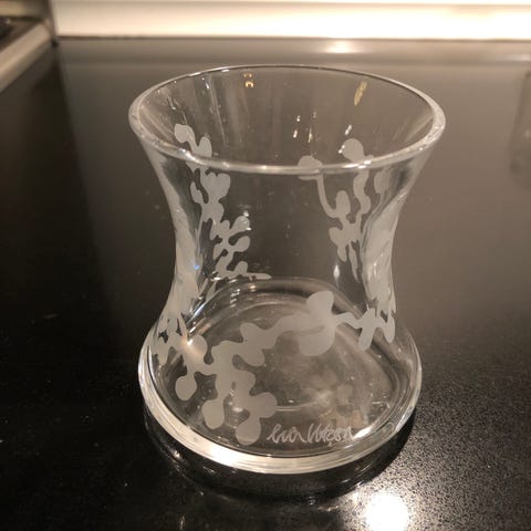 Filigran fyrfadsstage, Rosendal, designet af Lin Utzon. H: 7 cm x B: 11,5 cm. Helt ny og ubrugt i æske.