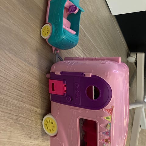 Barbie Campingvogn legetøj i pink farve med detaljer som køkken, seng og bord. Velegnet til børn, der ønsker at lege med camping- og udendørsaktiviteter.