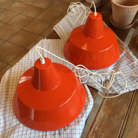 Rigtig fine værkstedslamper sælges som et sæt. Brugsspor som kan ses på billederne, men ingen buler eller større mærker.