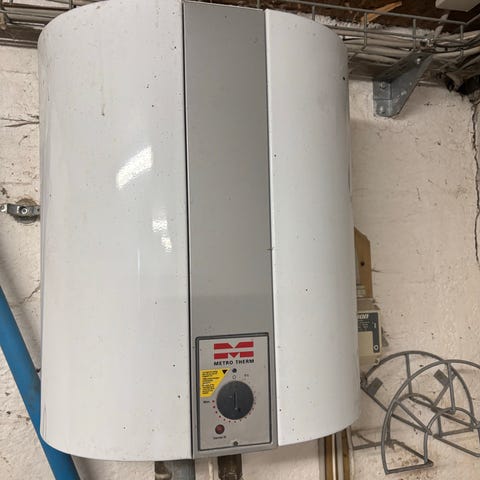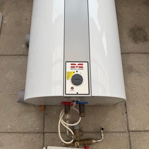 Metro Varmtvandsbeholder med en kapacitet på 110 liter. Produktet er fremstillet i Danmark og har en effekt på 1kw/3 kW. Den er designet til opvarmning af vand og er udstyret med en termostat til temperaturregulering.