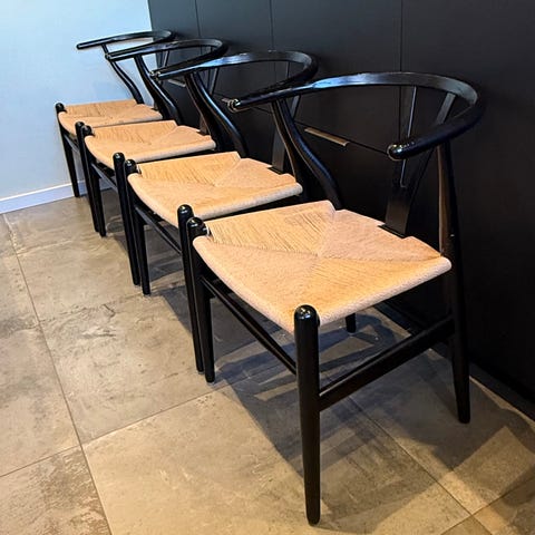 Stolen er fast I led og samlinger og har fået nyt sæde I papirgarn