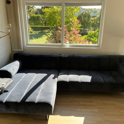 Vilmar sofa med højrevendt chaiselong i farven Velour Navy. Chaiselongen kan IKKE vendes.