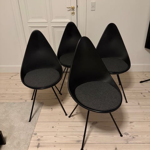 Sælger 6 stk. dråbe stole inklusive originale hynder.