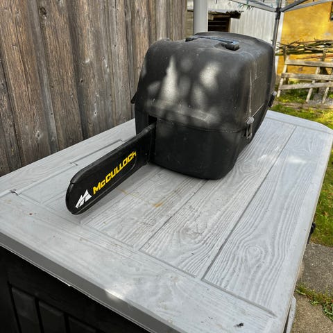 McCulloch motorsav i super stand. En trofast motorsav som starter hver gang.