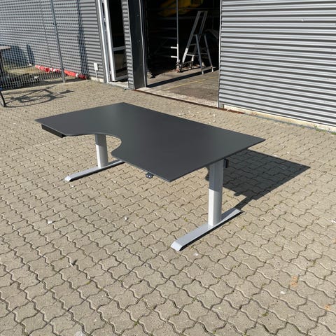Lækkert professionelt hæve sænke skrivebord. Med runde former - mavebue i højre side.