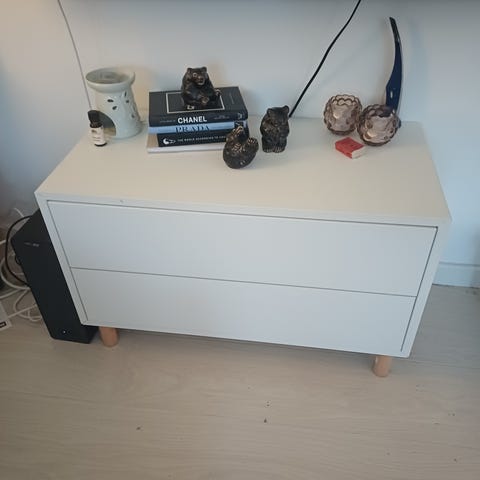 Eket skab med 2 skuffer har kun været brugt i 3 måneder.