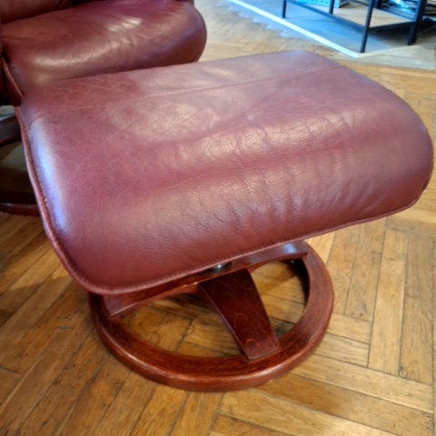 2stk. Fodskammeler med sort nappa og bejdset bøg ben.