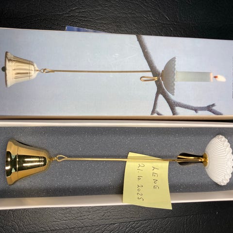 To fine lysholdere fra Royal Copenhagen med porcelænsskåle så der ikke drypper stearin på gulvet og fugle som balanceholdere.