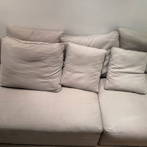Den fremstår uden skader i stoffet, men den kunne eventuelt godt bruge en rens.