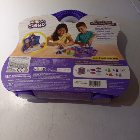 Kinetic Sand Soft Serve Station børn legetøj med 396 g kinetisk sand i flere farver. Sættet indeholder en soft serve maskine og tilbehør til at forme og dekorere sandet.