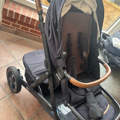 Kan ligges helt ned til det sovende barn god som rejse vogn da den fylder meget lidt klappet sammen