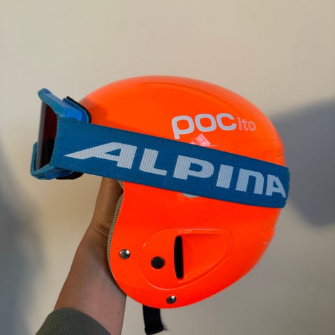 Super god skipakke til børn. Salomon skihjelm, lækkert Salomon flexcell light js rygskjold, Cruz goggles, merino inderhandske str 6.