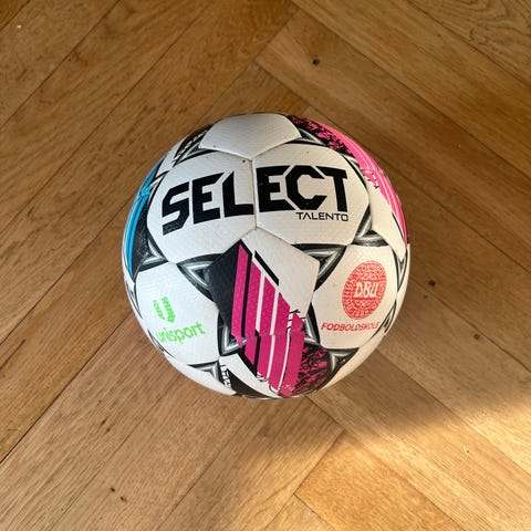 Select Brilliant Training DB fodbold i størrelse 4. Bolden er fremstillet i Pakistan og har et design med flere farver, herunder hvid, orange og blå. Egnet til træningsbrug.