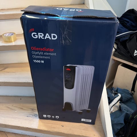 GRAD olieradiator med 7 ribber og 3 varmetrin på 600, 900 og 1500 W