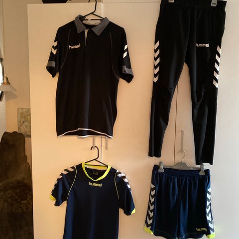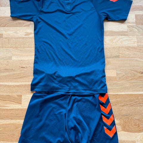 Hummel Fodbold Sæt til herre i størrelse S. Sættet består af trøje og shorts i hvid farve med sort detaljering. Designet til fodboldbrug.