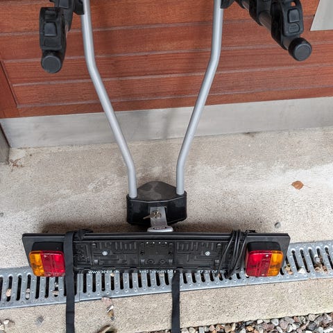 Thule cykelholder til anhænger med plads til to cykler. Fremstillet i metal med grå finish. Passer til de fleste biler med anhænger. Let at montere og afmontere.