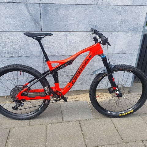Orbea Full suspension str large med carbonstel. Jeg købte den i 2019 for 31000,- og jeg har den originale kvittering. Fox kashima dæmpere, shimano xt bremser og pedaler. Sram xo gear 1×12 10-50, 32 tand 0val klinge. Ekstra kæde medfølger. Har kombi pedaler hvis du ikke har klik sko. Sælges pga køb af e-mtb. Skriv hvis du har spørgsmål eller vil kigge nærmere og prøve den. Er I 6510 Gram