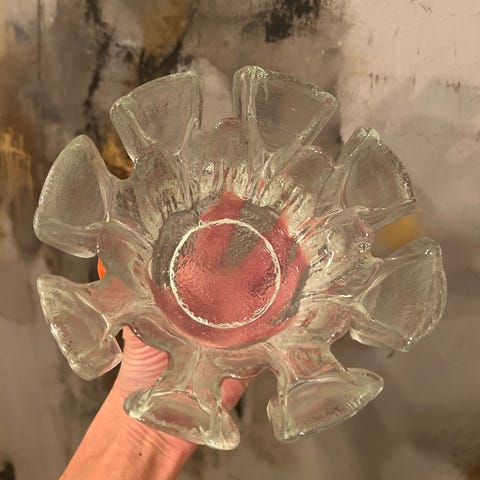 Smuk glasskål fra finske Humppila, design Perrti Santahlati, ca 1970. Forestiller to duer, grønt og klart glas, måler 13x22x17 cm, vejer ca 2 kg. Pris kr 300 afhentet Kbh Ø. Forsendelse kr 50