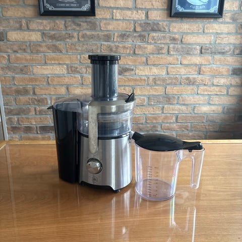 OBH Nordica Elixir 6756 citrus juicer med en effekt på 100 W. Fremstillet i rustfrit stål, designet til effektiv udvinding af juice. Velegnet til daglig brug i hjemmet.