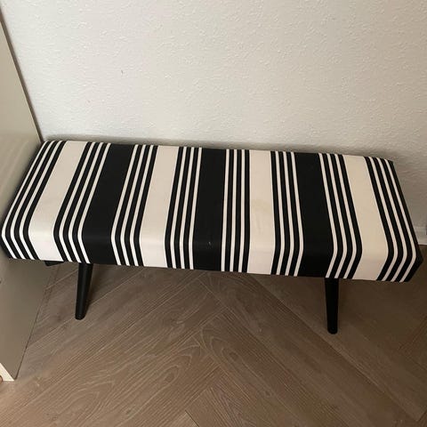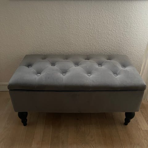 Opbevaringsbænk i beige fra Jysk i fin stand. Str.: Bredde: 95 cm, Højde: 45 cm, Dybde: 37 cm