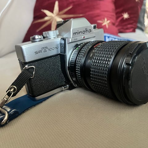 Minolta SRT 101 bruger 35mm film og 1 stk. PX 625A batteri (medfølger ikke).
