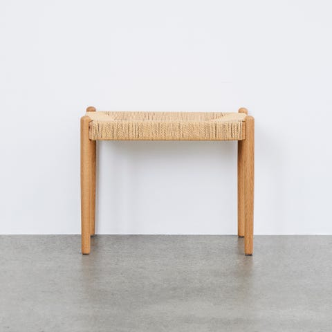 Super flot bænk i massiv egetræ og papirsnor flet sæde. Bænken er ny og ikke brugt. Derfor fremstår bænken særdeles flot. Mål: bredde 80cm. dybde 30cm. højde 45cm.