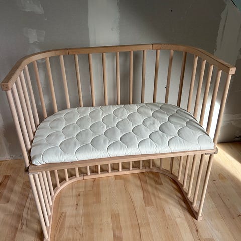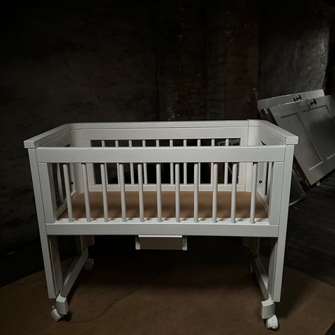 Den åbne del af sengen, har en side/låge der kan skydes op/ned. Derudover har sengen hjul, så man kan trille den med rundt i hjemmet.