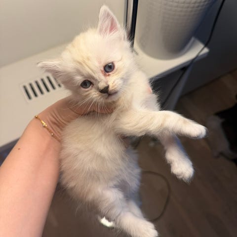 Olaf - hvid hankat - klar til nyt hjem den 26. december. Kr. 2400,-