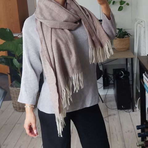 Stort dejligt og blødt lysebrunt / beige tørklæde med frynser for kanten