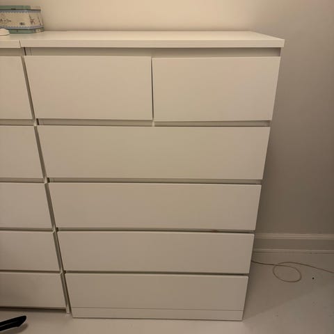 Malm kommode med 6 skuffer i hvid. Fejler intet, ingen mærker og skufferne kører perfekt.