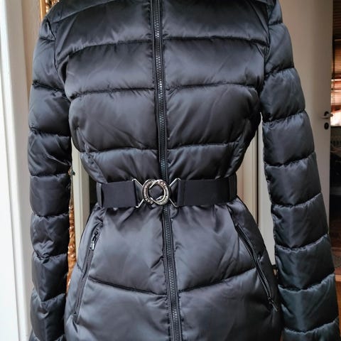 Armani Vinterjakke i sort farve, størrelse S, lavet af polyester. Jakken er designet til kvinder og egner sig til kolde vejrforhold med sin isolerende funktion.