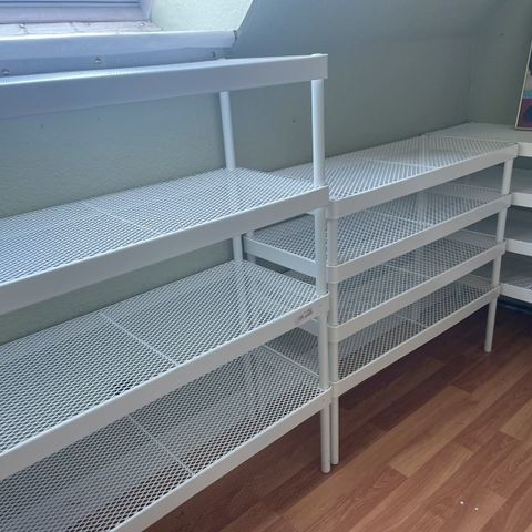 Antonius, Grå metal, 5 hylder (89x35), 2 hylder (80x45), bøjle stang, holder til jakker, 3 skinner (180)