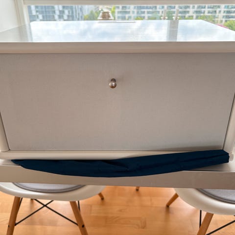 Til ophængning med føring til kabel + skuffe til fjernbetjening mv.