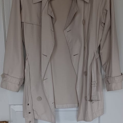 2 trenchcoat’s i str S. En i sort og lidt kraftigere materiale (efterårsmodel) og en sandfarvet i str S i lidt tyndere udgave (sommermodel)