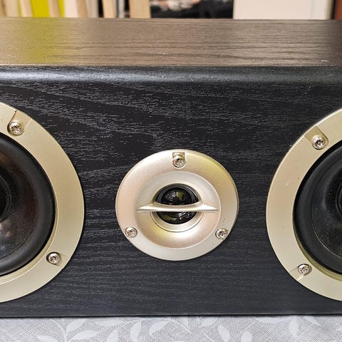 Heco Victa Prime Center 102 centerhøjttaler i sort farve. Højttaleren har to basenheder og en diskant placeret i midten. Den er designet til brug som centerkanal i et surround sound-system.