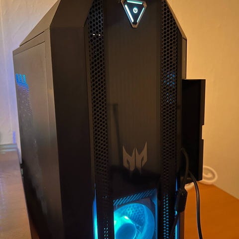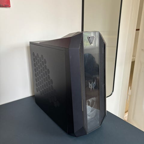 The desktop boasts a stylish and compact Obsidian Black chassis, measuring just 19 cm wide, making it an ideal fit for any desk setup without compromising on power. Its iconic Predator design ensures it makes a striking impression, both aesthetically and in performance.