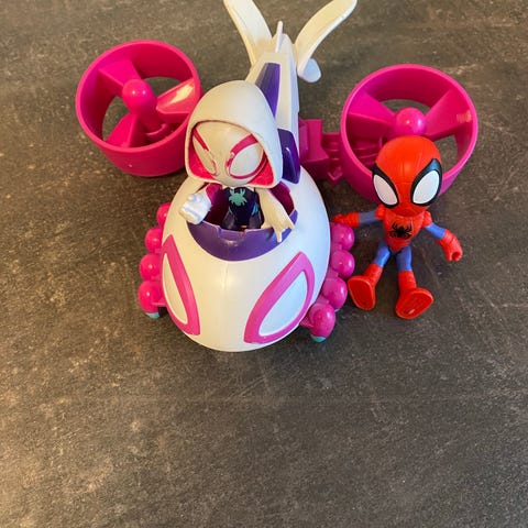 Spidey i hans bil der kan skyde netspind afsted. Figuren kan ikke tages ud af bilen